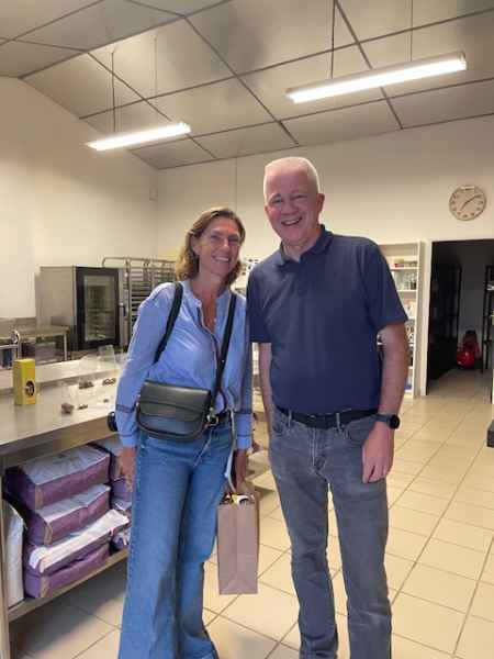 Pour l'instant ils apprenent, l'ensachage de nos biscuits et le collage des étiquettes sur les sachets Trio.